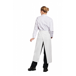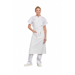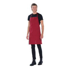 Caractéristiques : Tablier à bavette, 1 poche ventrale. Usage : Boulanger/Pâtissier, Boucher/Charcutier, Cuisinier, Plongeur/Vaisselier, Ecole hôtelière... Tailles : 90x105 Couleurs : Blanc, Bordeaux, Noir.