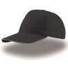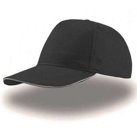 Casquette à 5 panneaux avec fermeture par Velcro®. Bandeau en polyester. Liseré sandwich sur la visière. Œillets surpiqués. Panneau avant renforcé. Visière préformée avec 6 coutures.